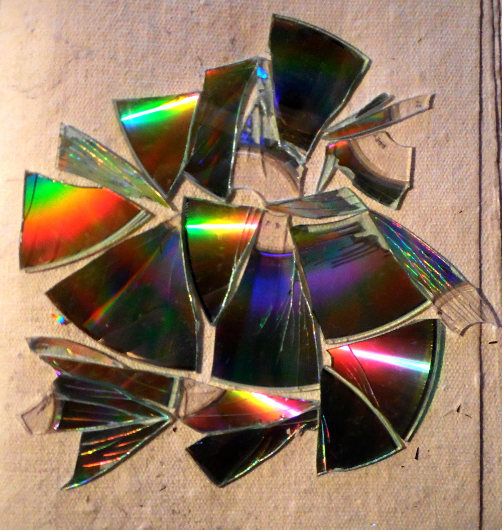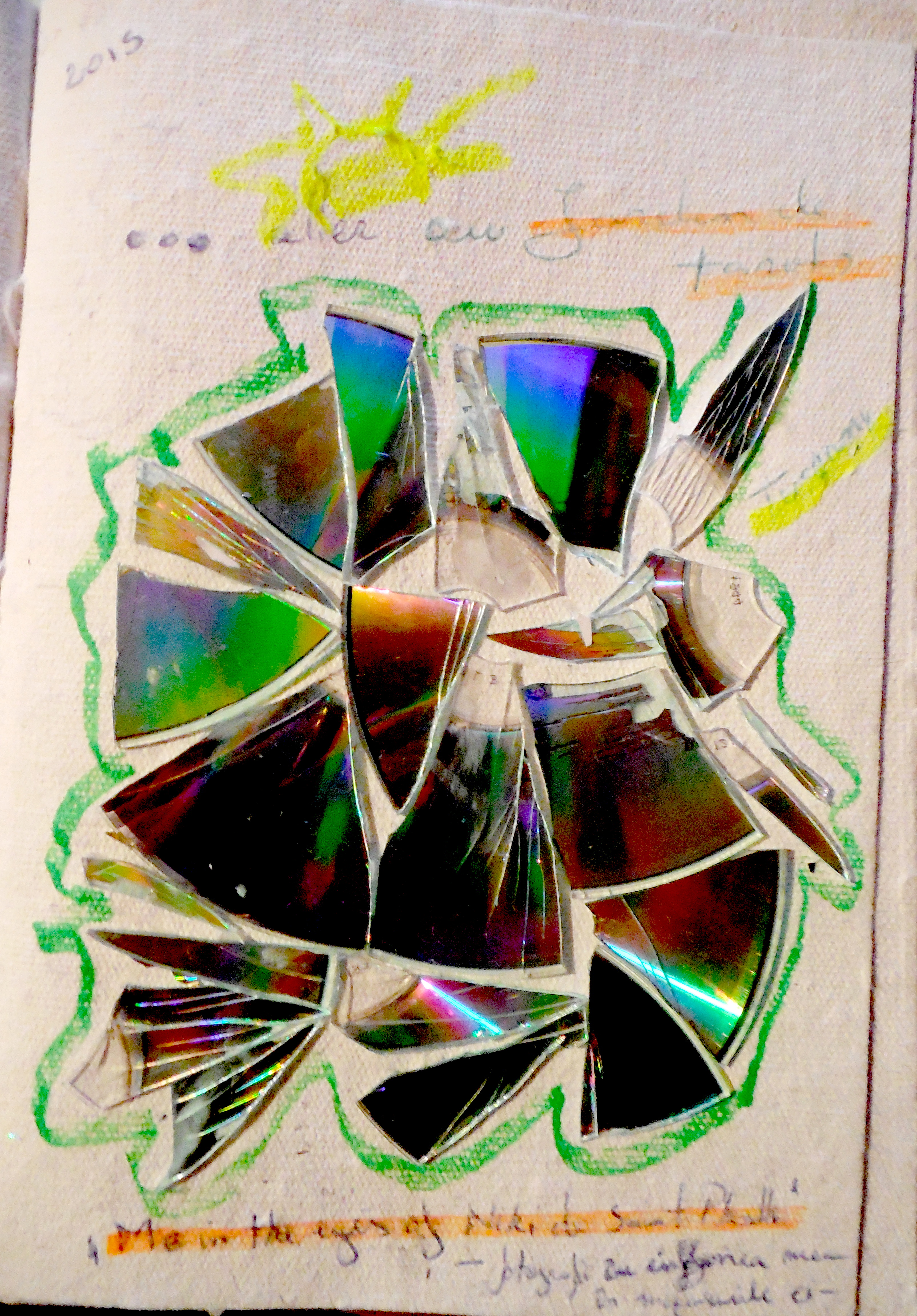 Niki de Saint Phalle is a great inspiration for me. I was looking at her shinny mosaics and thought it is nice that you can see yourself and the world around you in them, but differently. So, i took a CD, I broke it and made a collage of the pieces, then put them back in the original state. The putting back together was fun because I love doing puzzles. Puzzles are our way of defeating death, because solving a puzzle is like solving a mystery and there is no greater mystery than death. And even if you emerge with cracks of missing pieces is still a win, because you can always choose to assemble the pieces differently and be complete in a different way. Here, Niki de Saint Phalle is a real inspiration because she rebuilt herself through art.
