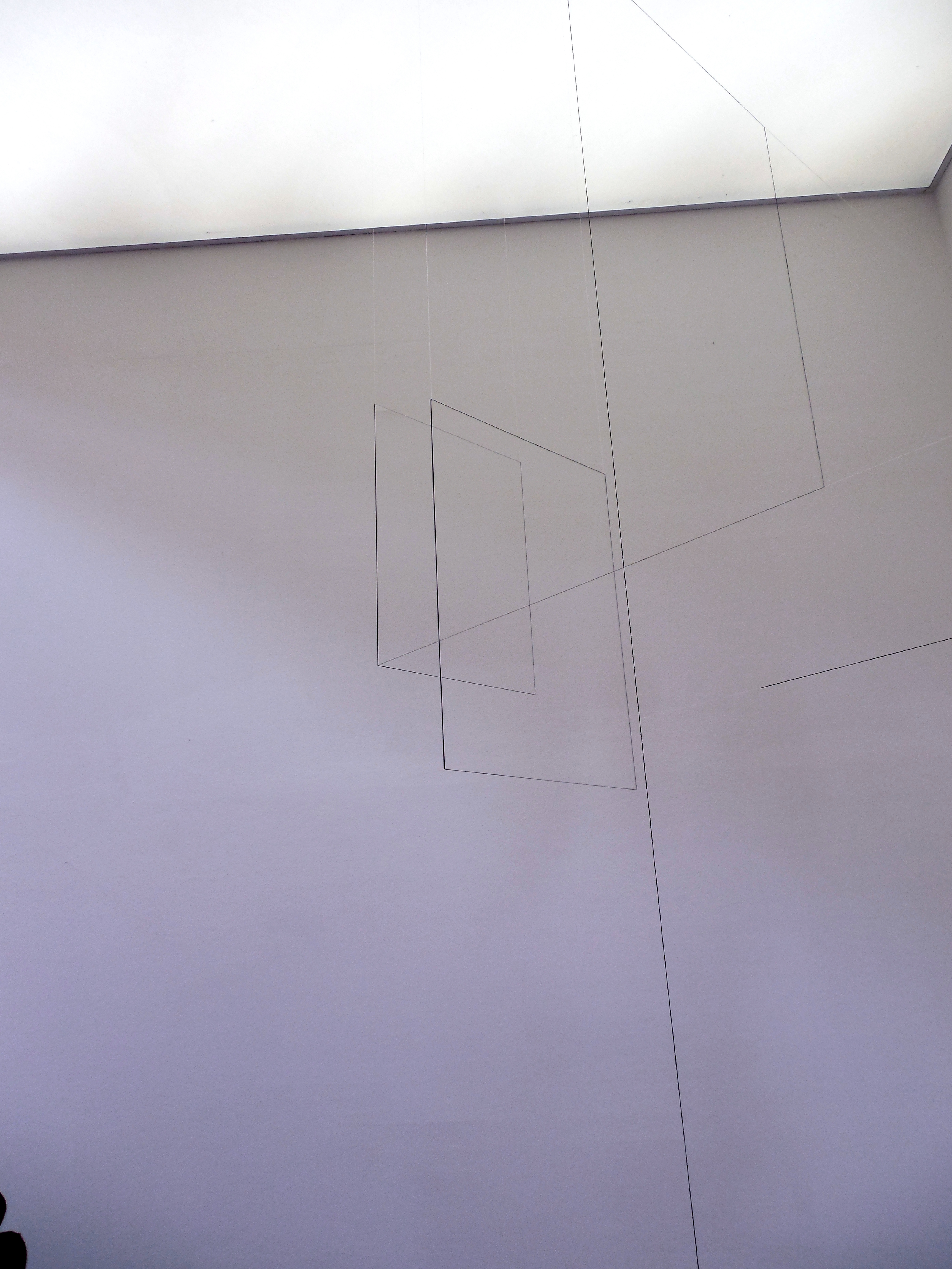In one of the galleries, the first room seemed empty, but there were people walking around in it, so I went in too. I made a few steps in and there was a wire hanging a few inches from my face. I doubled back and went around it. There were several wires with rocks hanging from them to keep them straight. I didn’t know what to make of them, but the next room answered all my questions.