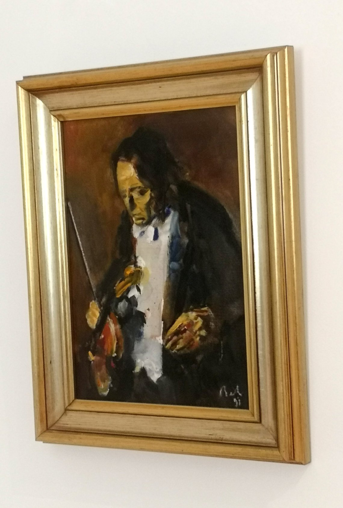 I spent some time in this room, which also houses three portraits of Enescu: one of the composer as an arrogant figure with defined features (you all know that portrait, I’m sure) and two of him hunched, carrying his violin, which is what he actually looked like, at least through Baba’s eyes. The painter seemed to have been fond of the composer.