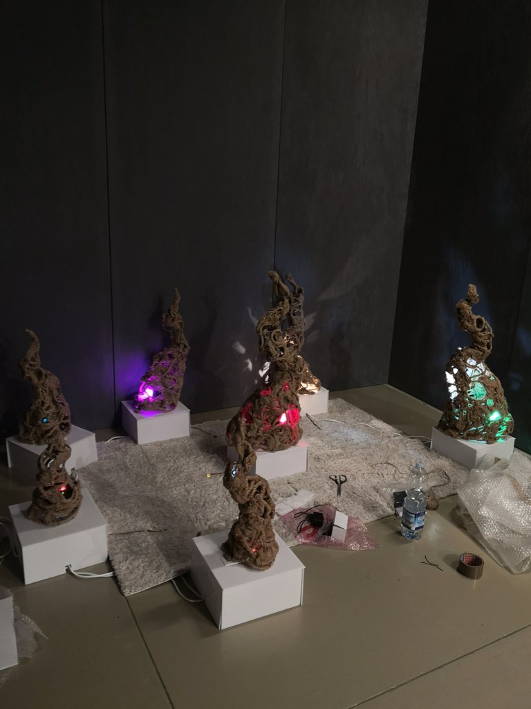 The second day, while I was waiting for the electrical circuit to be set-up, so I can connect the installation, I talked to the curator and decided to move the installation in a better position. #muchlove ❤️