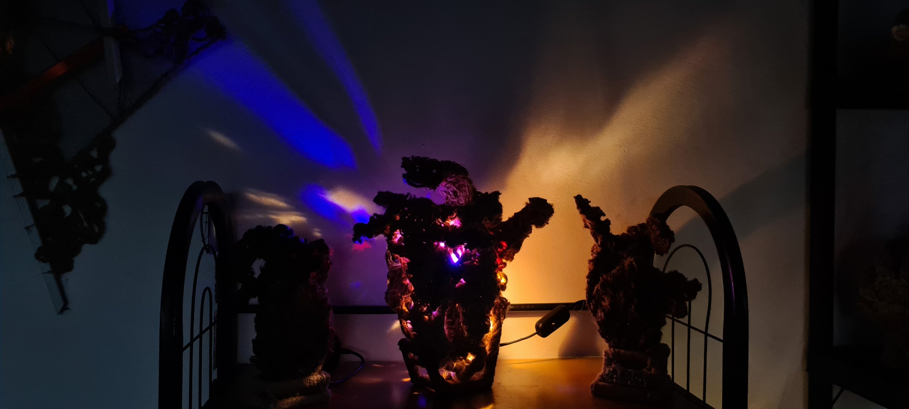The crown lamp being the one that combines three colors to create a feeling. I named this lamp – Mixed feelings – and I know my choice for the combination back then was red and cold white, which would give a pink-ish color for the most part.