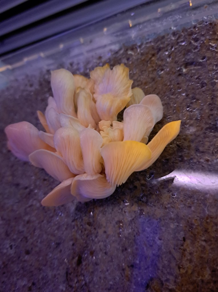 Ultima lucrare din expoziție, ca să încheie într-o notă ideală pentru mine, este tot cu plante, cu ciuperci. Am stat un pic cu ele, să le simt, să le miros, să le privesc cum cresc. 💚