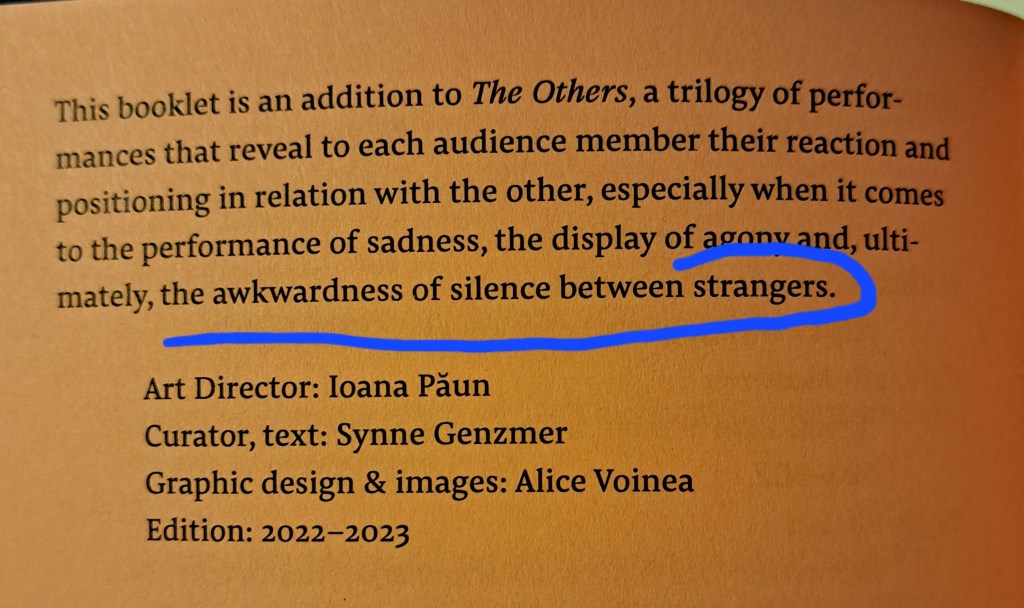 I went to a 30 min performance by Ioana Păun, The others. I didn’t have any expectations and almost didn’t go as I had to be somewhere else afterwards and it was a bit of a close call.
