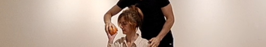 I wanted to combine this performance with scenes of movement with two performers that are in a predetermined dynamic: one controls the other. At on point the situation will evolve so that the two would have to change their positions.