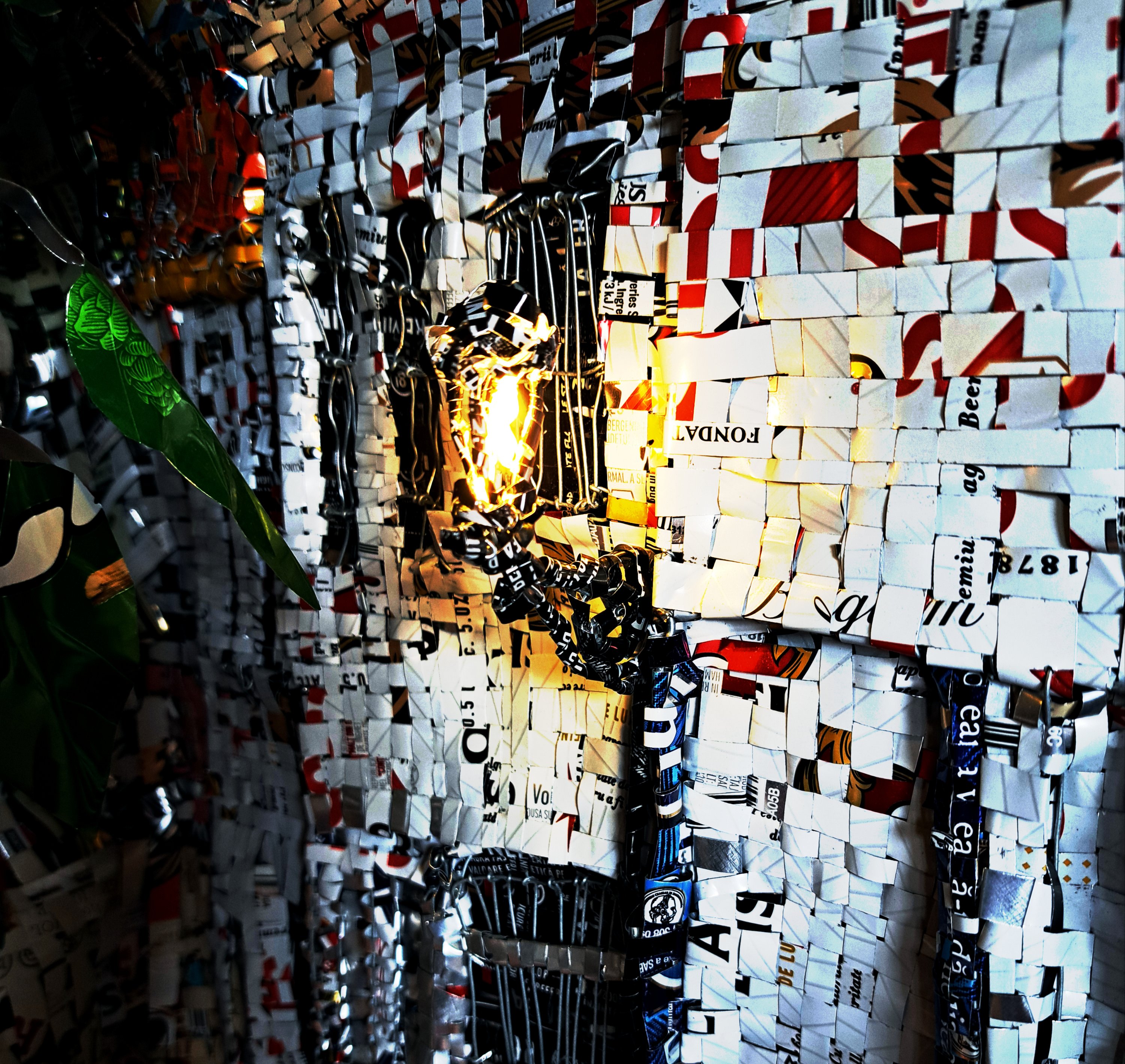 As I was sitting in my studio, where I had a hard time entering for the past month and a half, and I was looking at the works on the walls, I thought I could make that lamp. And I did.