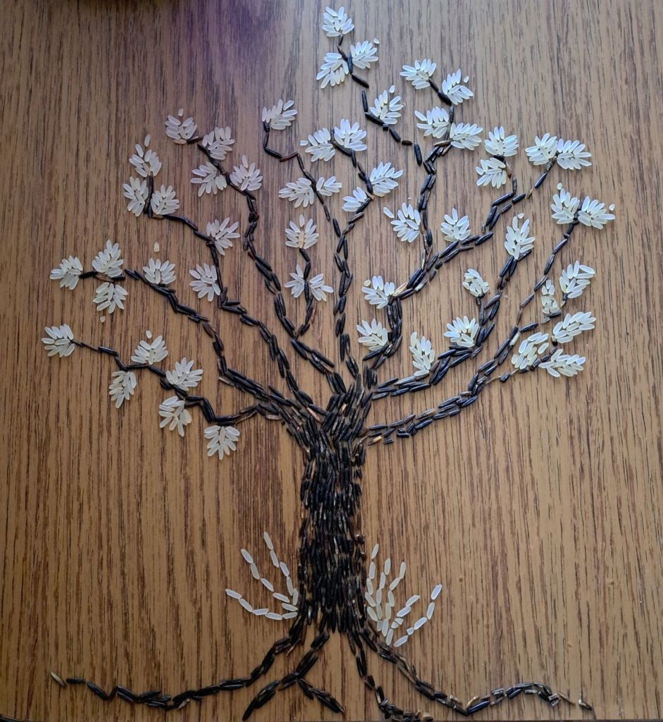 27 and 28 were spent counting rice, since this was something I couldn’t do in darkness. Additionally, I went for walks since it was very nice outside. I did some drawings. I also decided to draw on tree a day, everyday until the notebook ends. One of the trees was made of rice.