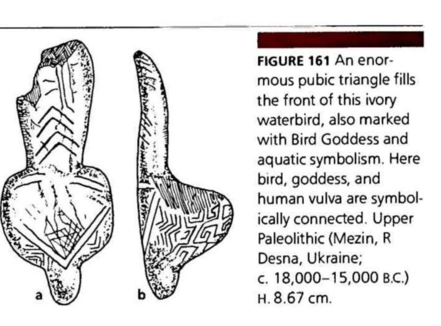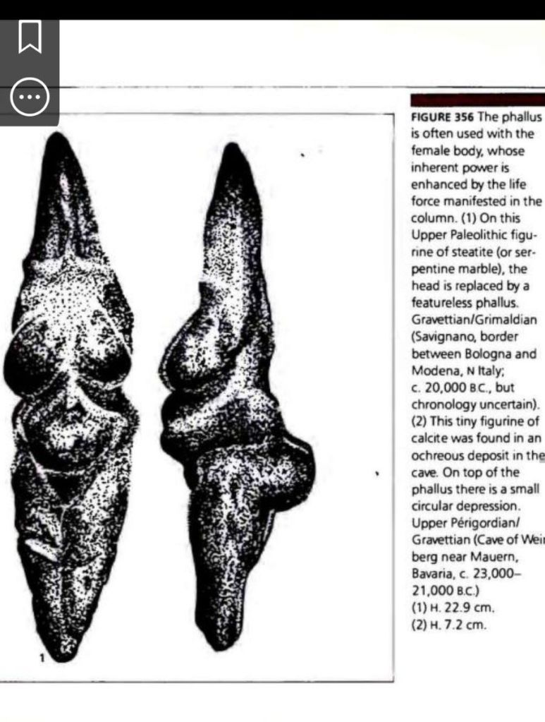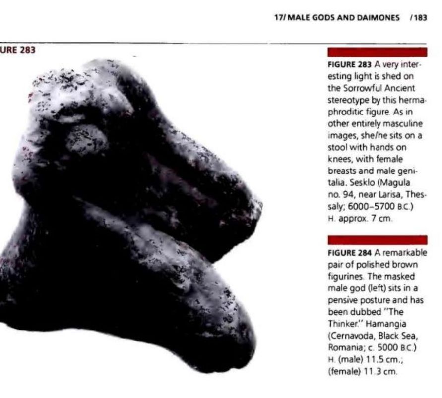 I have seen in this book way too many statuets which combine the feminine and masculine organs to not be sure they understood exactly how life was created. The prevelance of vulva over penis depictons must be due to the fact that this pathway was more obvious and directly connected to creating and maintaining life. The seeds are important for sure, but the environment is crucial for life to evolve and thrive. Those symbols were not sexual, but methaphors for all life. Especially for Neolithic civilization which already had agriculture and domesticated animals. They has rituals before and after seeding.