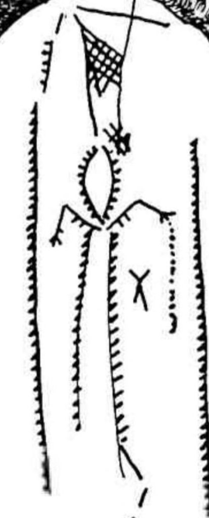 The tri-line sign seems to symbolize a triple (or multiple) life substance of dynamic quality which flows from the body of the Bird Goddess, the Giver and Sustainer of Life.