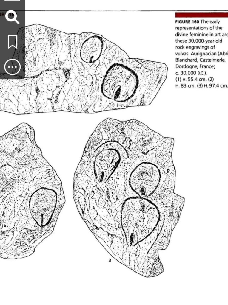 Gimbutas states repeatedly that the Neolithic Goddess created without insemitation for a male counterpart, but as you can tell, I do not agree with that. I do however agree that the medium of creation was more important than the seed, hence more depictions of vulvas. She could be right until one point in history though as the earlies depictions are of vulvas only.