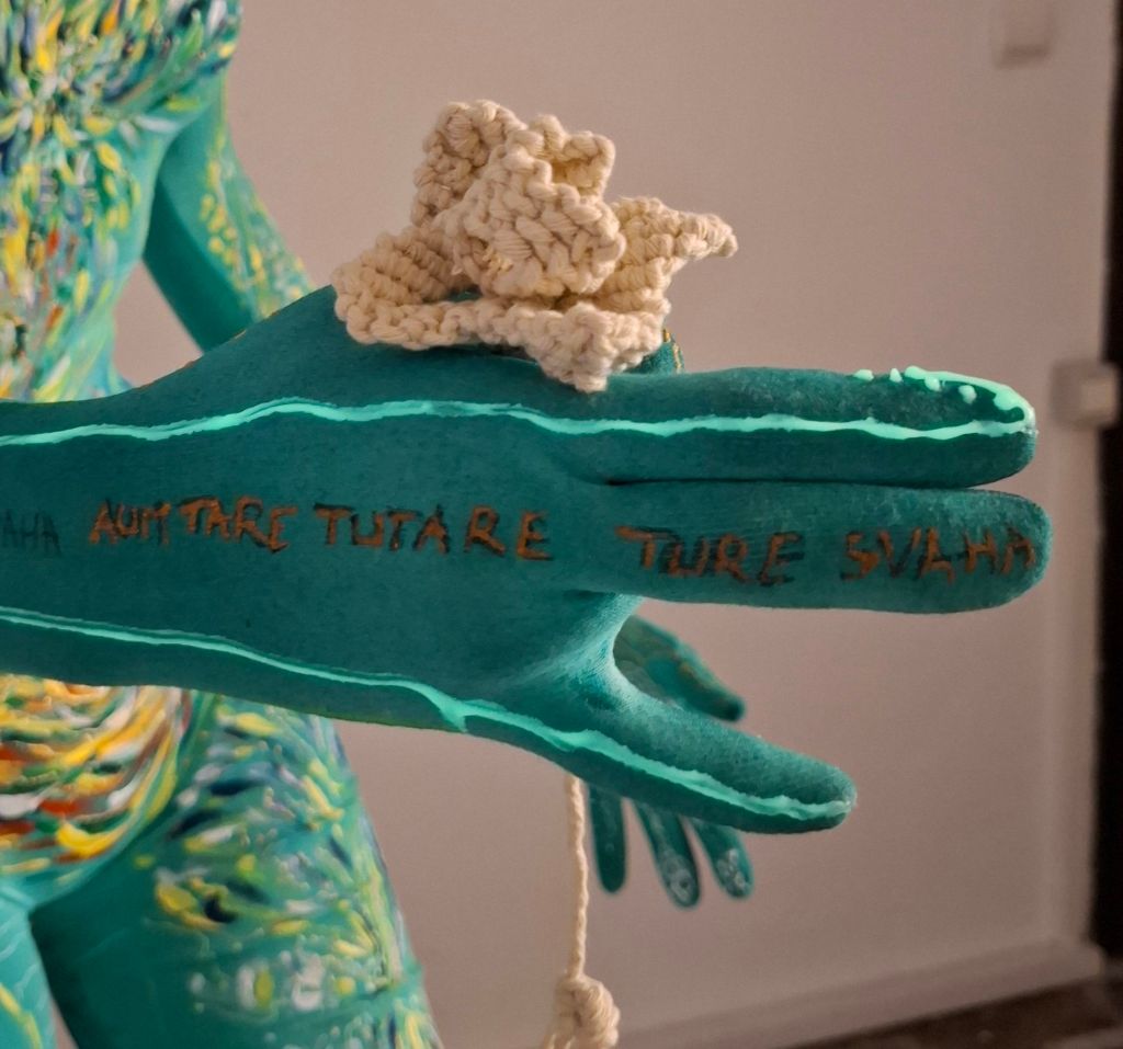 Even before this new perspective was revealed to me, the inspiration which Tārā provided made me want to pay tribute to her and I asked Livia Mateiaș to paint the manquin from “The moment before…” as Tārā together. She suggested to make it a performance with publiv and I picked the 28th of February as the 12th day of the new Chinese year and a sacred day in Buddhism. Felt perfect for a ritual of adoration, not just for Tārā, but for women, in general.