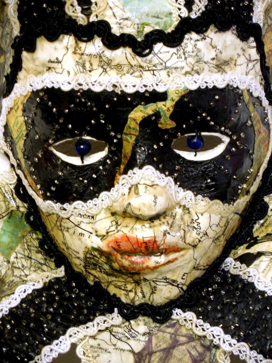 beads, collage, decorative mask, family, gift, inspiration, jester mask, king's fool, lace, relatives, venetian mask, venice